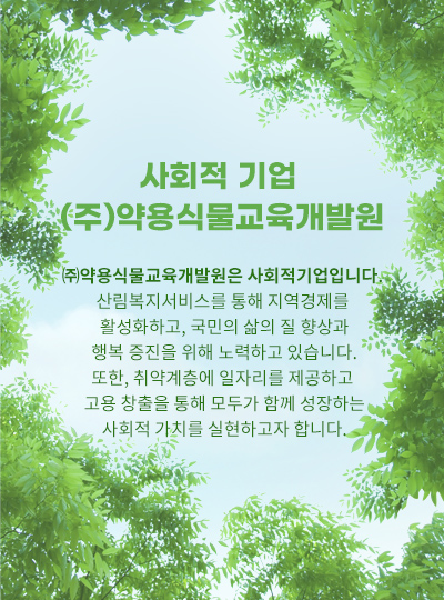 (주)약용식물교육개발원은 한번 더 생각하여 나아갑니다.