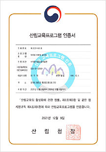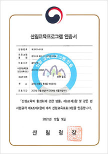 - 강원도지사 주관 산림교육 유공 표창장 수여