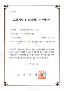 - 교육부장관 주관 교육기부 진로체험기관 인증